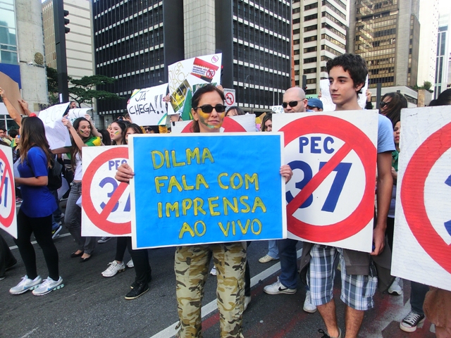 “Weg mit Dilma”. In deutschsprachigen Deppen-Medien heißt, es die Proteste richteten sich nicht gegen das Staatsoberhaupt Dilma Rousseff.