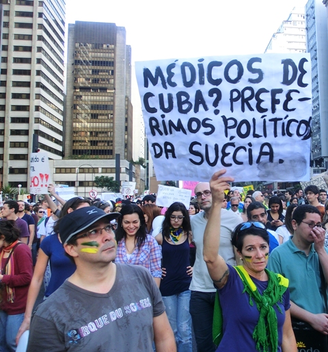 Sprecher der Sozialbewegungen nannten gängige Einschätzungen Unsinn, daß bei der jüngsten Protestwelle die brasilianische Mittelschicht auf die Straße gegangen sei. Daß bei den Straßenprotesten die ausufernde Regierungskorruption eine solche Rolle spiele, zeige deutlich, daß anders als selbst in europäischen Medien behauptet, unter der Rousseff-Regierung von konsequentem Kampf gegen die Korruption keine Rede sein könne. Auffällig sei die zunehmende Staatsverschuldung Brasiliens, darunter die Außenverschuldung. Trotz wachsender Bevölkerungszahl gehe der Konsum, darunter der Kauf in Supermärkten zurück.