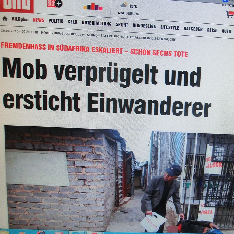 „Wenn der Mob wütet“. FAZ 2015, Afrikaner gegen Afrikaner. Zensurbestimmungen für deutschen Mainstream etwas gelockert – Manipulationstrick Scheinobjektivität? Nach Rede von Geert Wilders bei Pegida in Dresden auffällig viele politisch stark unkorrekte Berichte ohne Gutmenschen-Gesülze, deutlich abgeflaute Kritik an Pegida. „Tröglitz ist überall!“ – kurioserweise Schweigen über Ermittlungsergebnisse. Hohe Vergewaltigungsrate in Afrika, besonders in Südafrika – ob jetzt deutsche Medien berichten dürfen?