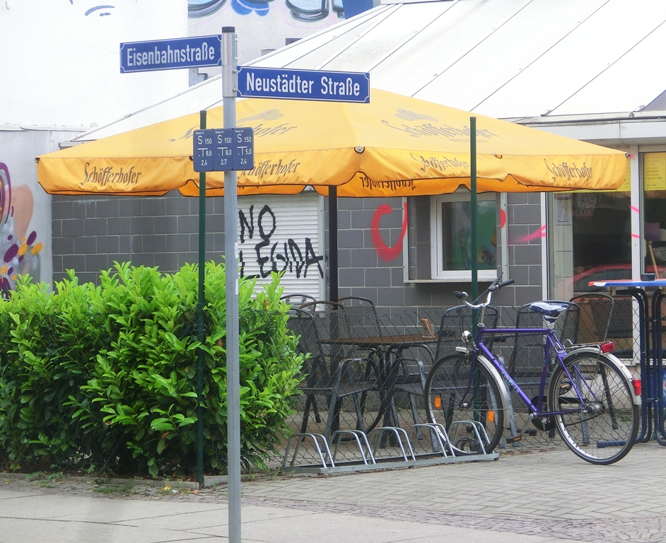 Leipzig, Eisenbahnstraße 2015, „No Legida“.