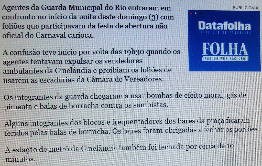 Ausriß, Qualitätszeitung Folha de Sao Paulo, Jan. 2016