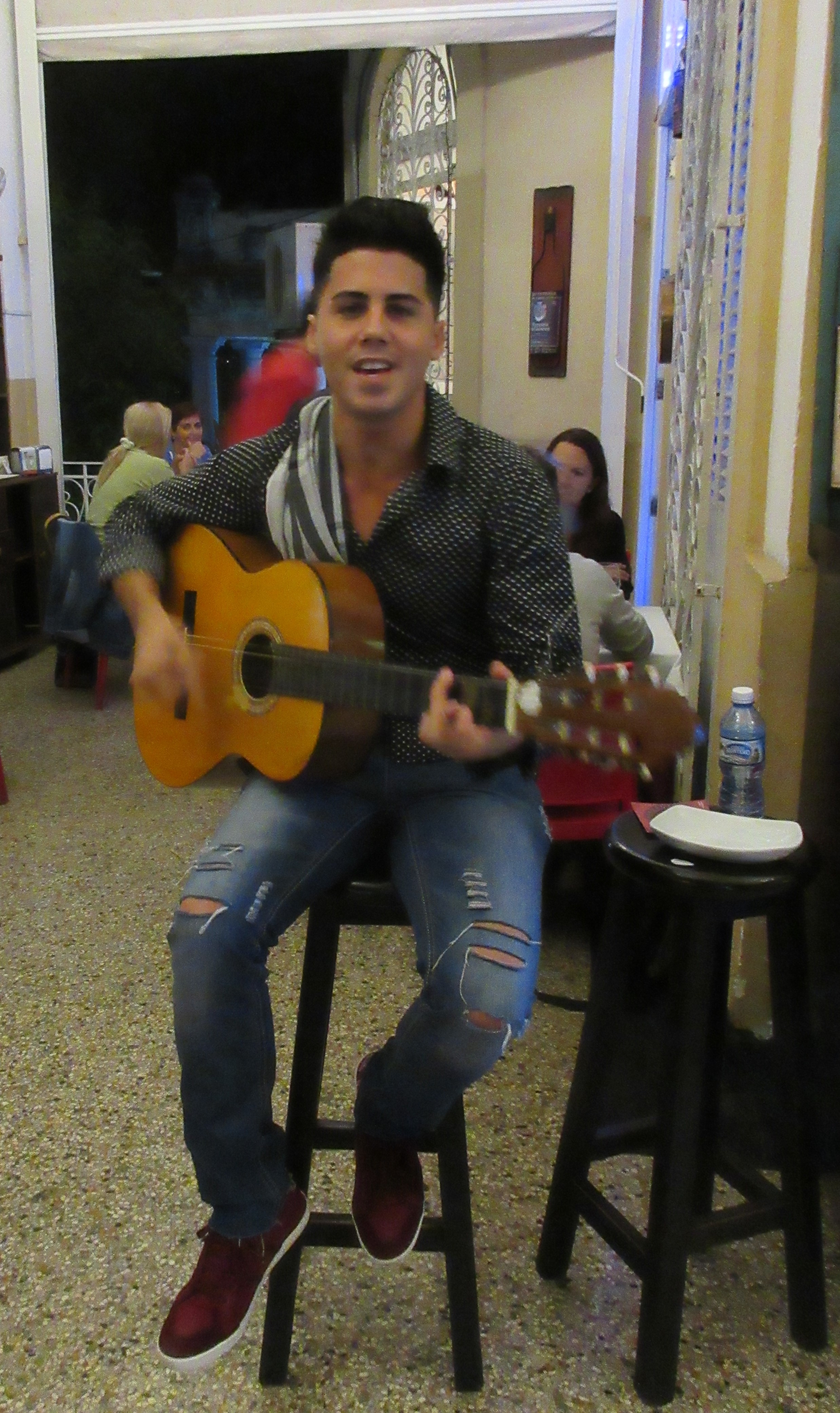 Ganz wichtig – weder Mikro noch Verstärker, wie bei klassischen Konzerten – und schon ergibt sich ein Klangreichtum, der in Mitteleuropa bei Kapellen fast stets durch die elektronische Verstärkung zerstört wird. “Quinteto TradiSon” in Havanna, “La Bodeguida del Medio”, nahe der Kathedrale.