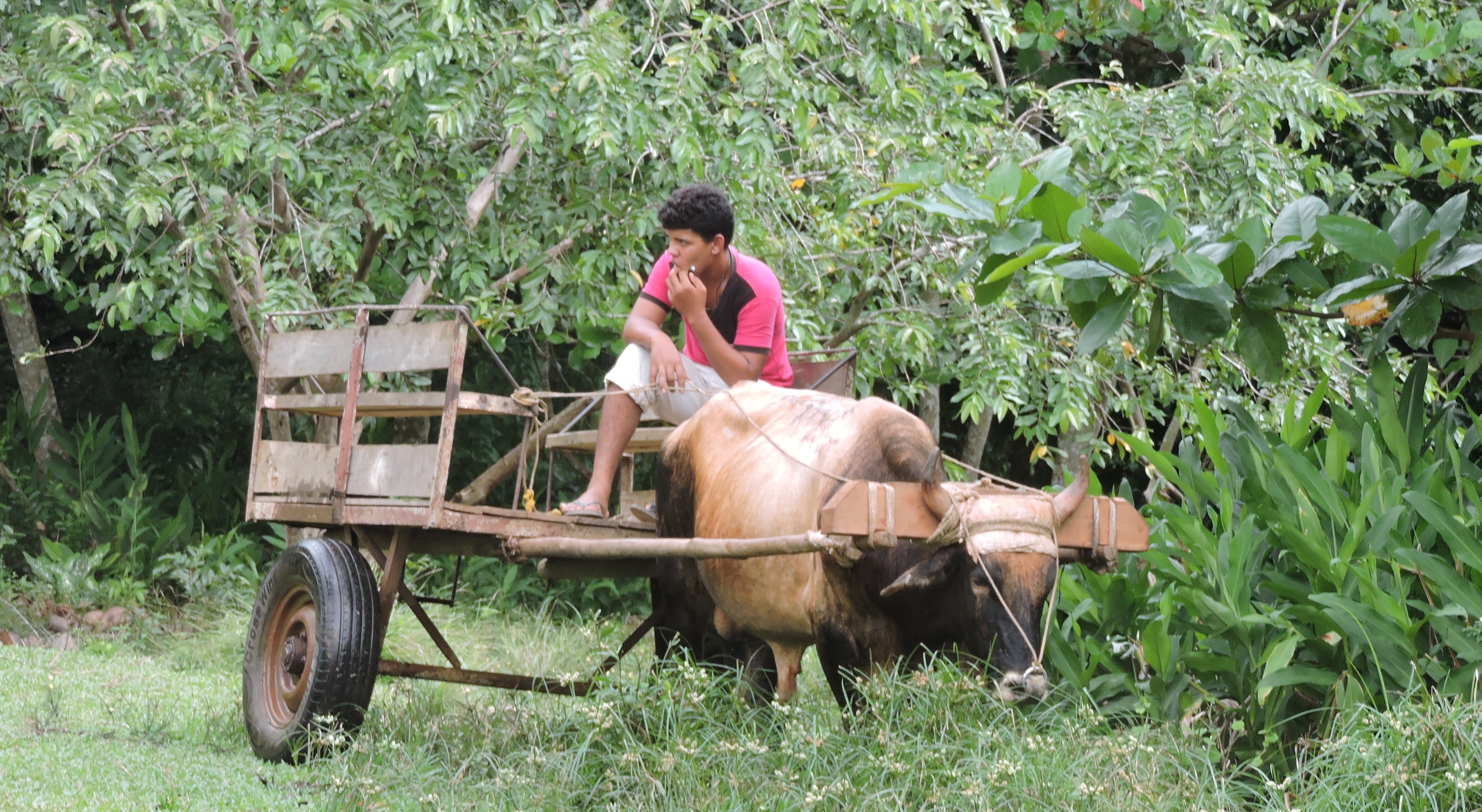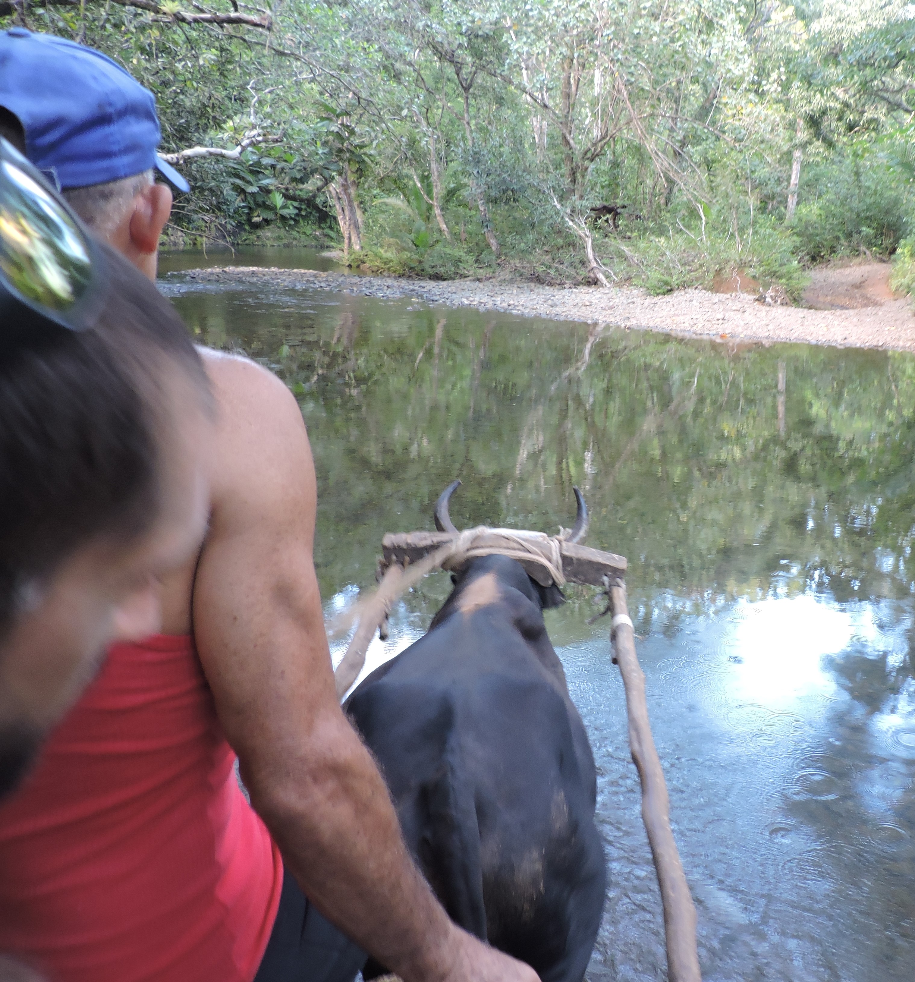 Wo der Benzin-Jeep nicht weiterkommt, hat der Stier keinerlei Probleme – ökologischer(abgas-und lärmfreier) Transport bei Baracoa.
