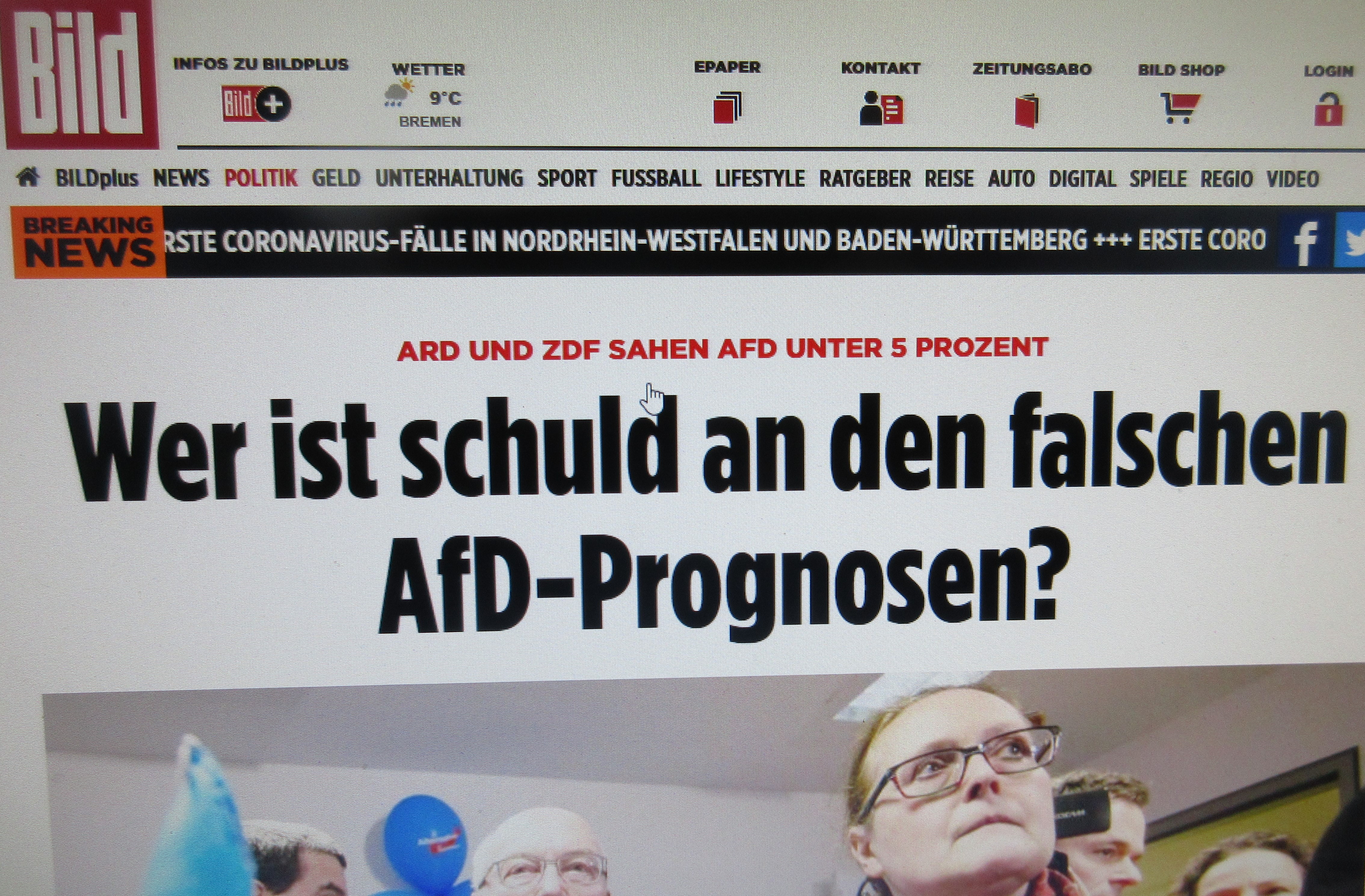 „Wer ist schuld an den falschen AfD-Prognosen?“. Ausriß BILD