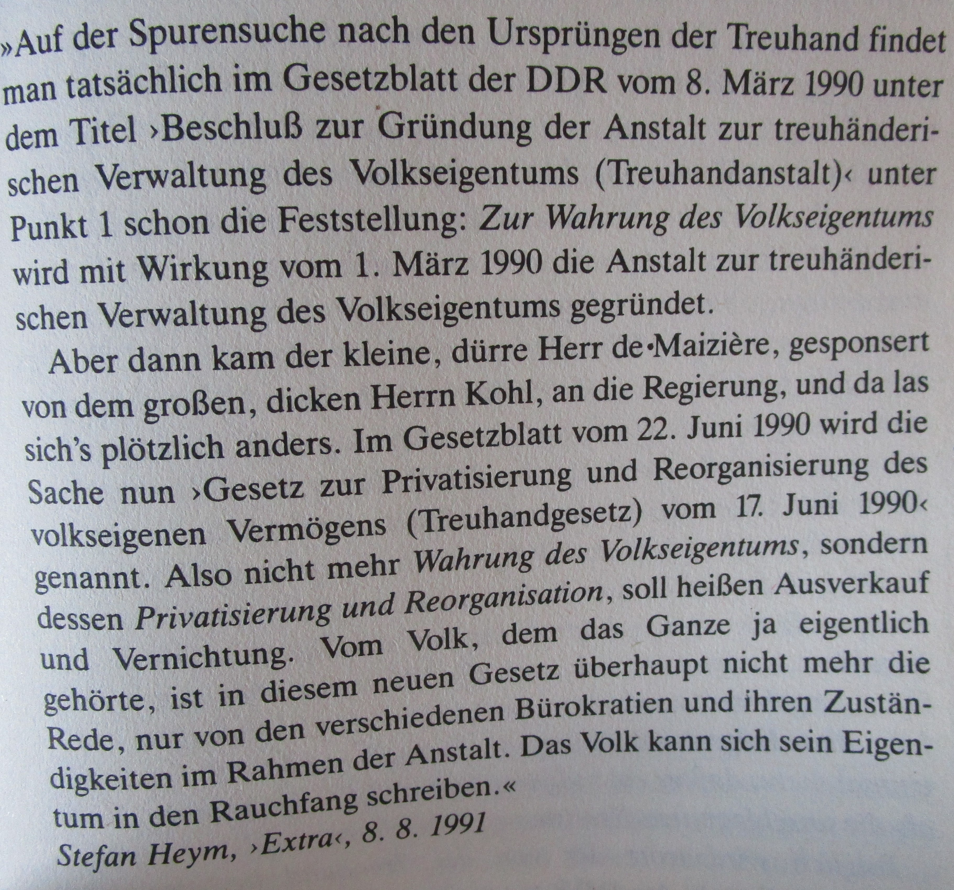 Ausriß“Wessis in Weimar“: „…ich muß wirklich sagen, die Art, wie Kohl mit Modrow in Bonn umgesprungen ist, hat mich unwillkürlich an die Art erinnert, wie Hitler 1938 mit dem österreichischen Bundeskanzler Schuschnigg umgesprungen ist.“