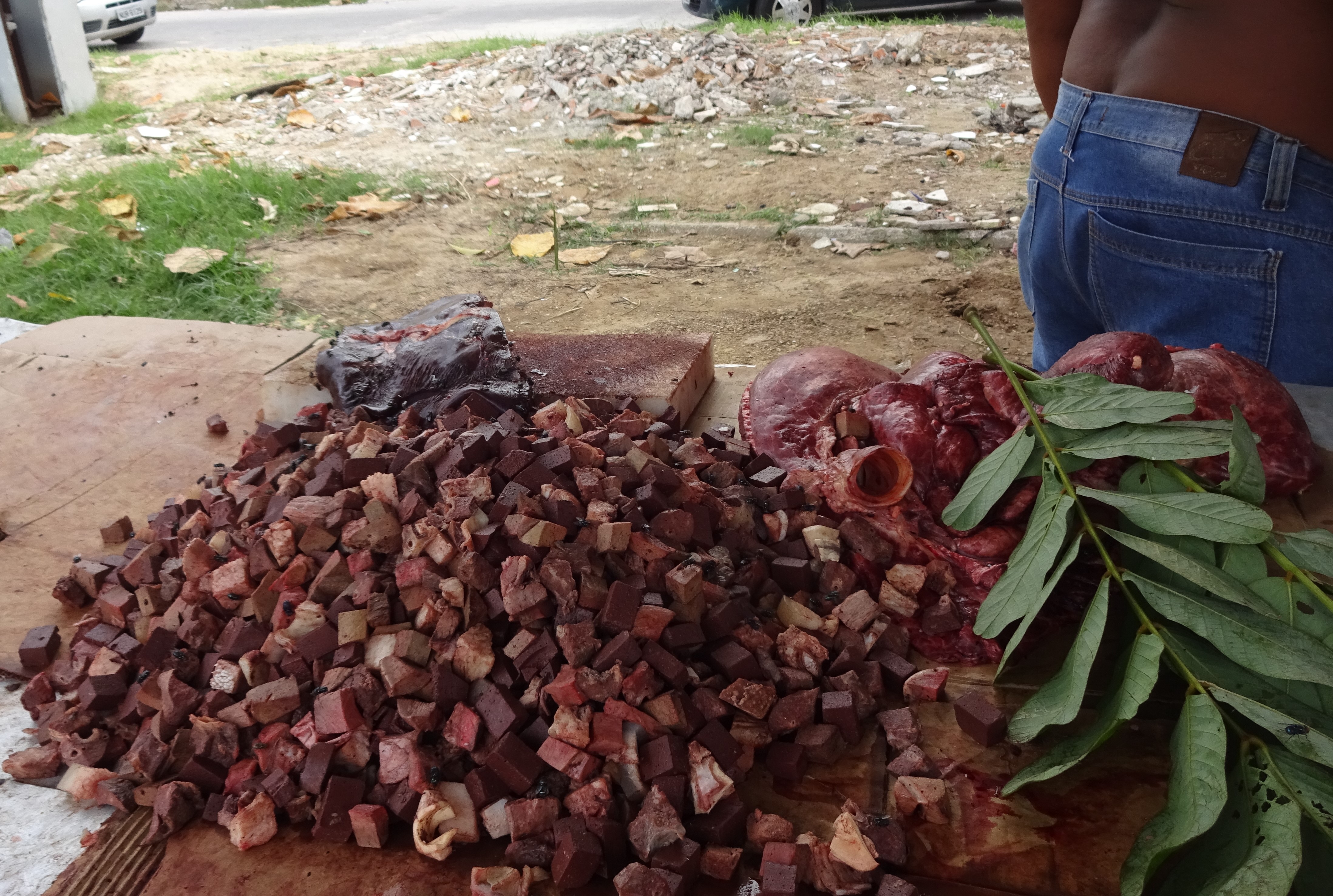 Rindfleisch auf Straßenmarkt, Tropenhitze.