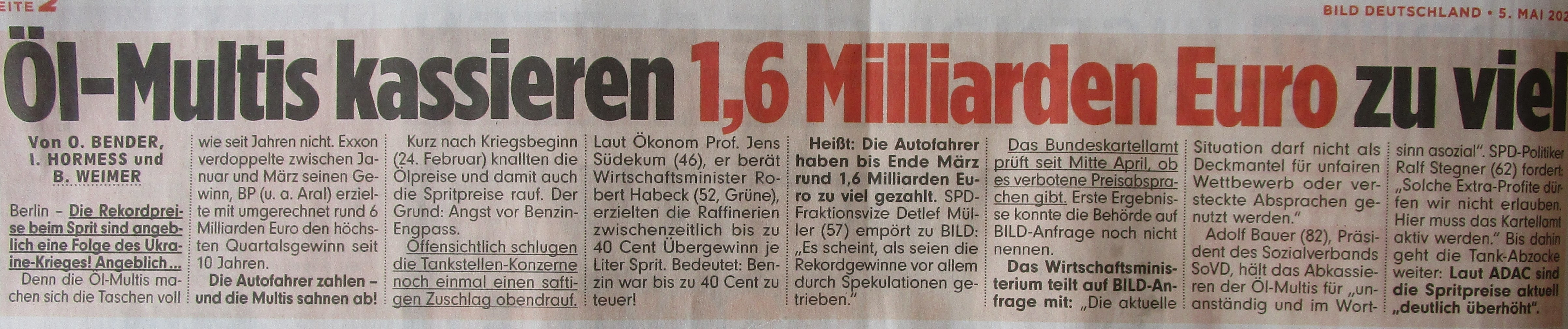 “Öl-Multis kassieren 1,6 Milliarden Euro zuviel”. Ausriß BILD