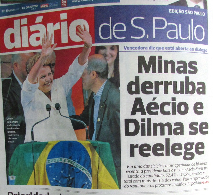 Größte, auflagenstärkste Qualitätszeitung „Folha de Sao Paulo“, Schlagzeile: „Dilma und Aecio erreichen den Wahltag mit technischem Patt“. Keine Erwähnung des Ibope-Umfrageresultats, das Dilma Rousseff mit 6 % Vorsprung vor Aecio Neves sieht.