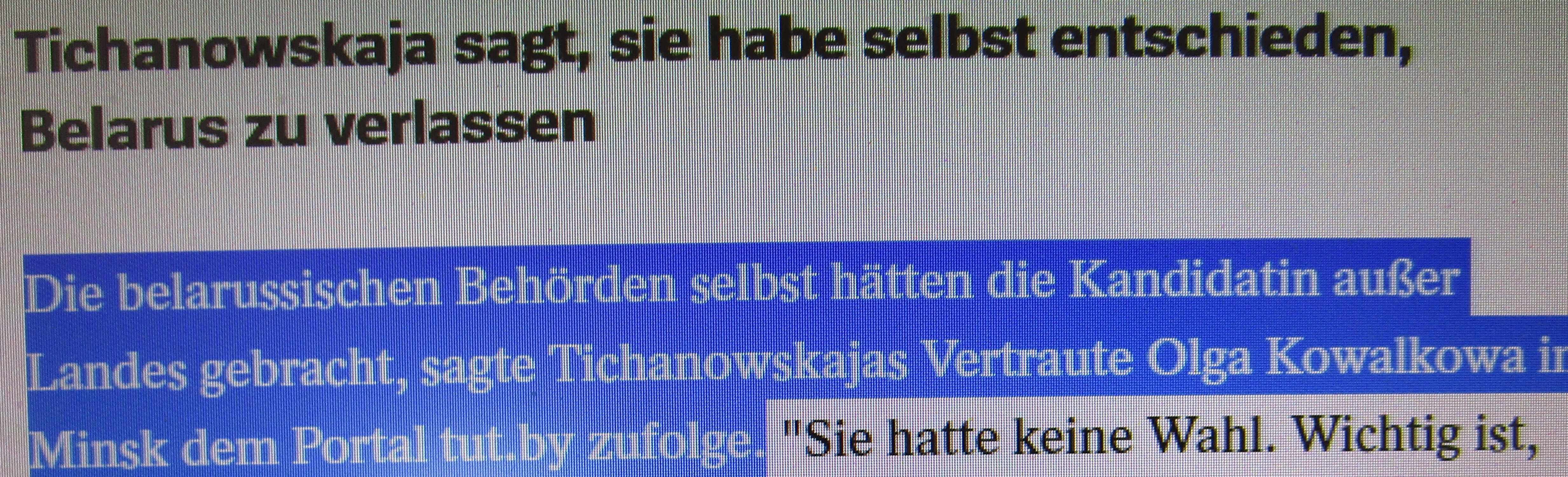 Nach BILD-Informationen wurde Oppositionsführerin Swetlana Tichanowskaja (37) in das EU-Land Litauen geschmuggelt, weil ihr Leben in Gefahr war.“ BILD